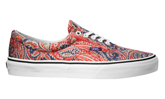 The collection comprises of 6 Liberty Art fabric prints on 2 classic Vans footwear styles (the era and the authentic). The printed designs range from Paisley patterns to more classic Liberty scarf designs and are available in purples, greens, blues and reds.
