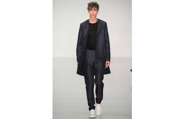 I seem to love everything that Agi & Sam come up with. Each season their look is so completely different but manages to maintain a sense of their identity. They really need to be applauded for that alone. For SS15 the look is all about slightly Japanese style loose-fitting smock jackets, socks with sandals (sorry I can’t buy into this strand) and pleated trousers. The colours were controlled switching between block whites, blues, grey and camel. Camel it seems will be a big feature next summer having featured across a few designers collections.